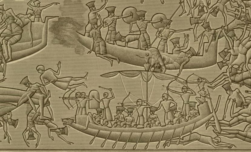 Морський бій між єгиптянами і “народами моря”. Барельєф з Фів