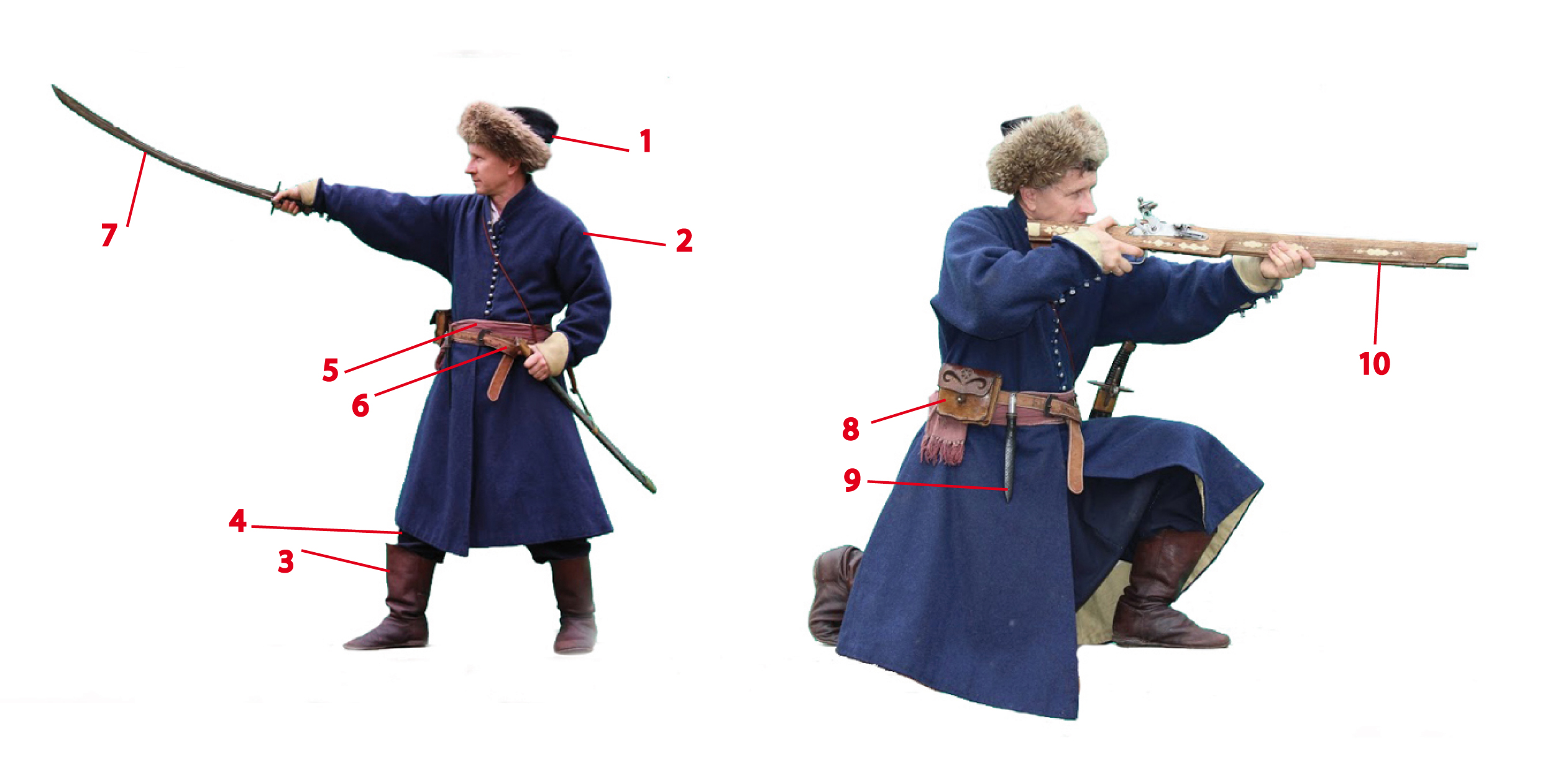 Реконструкція представляє реєстрового козака (курінного отамана), який походить з козацького роду. Одяг, зброя та спорядження характерне для реєстрового козака середини XVII ст.