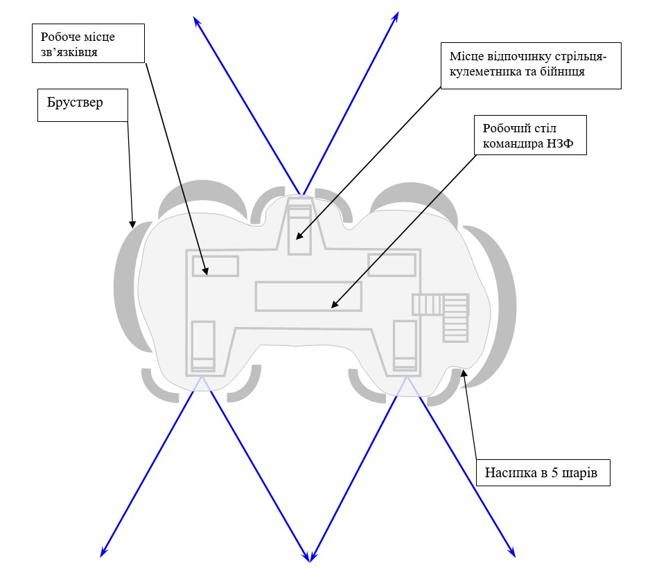 Система вогню та інженерних загороджень була також багатоярусною. По периметру були встановлені розтяжки, протипіхотні міни, всі підходи до висоти були під обстрілом вогневих засобів. Це ще раз доводить, що на чолі бойовиків стояли фахівці військової справи, які були знайомі з останніми збройними конфліктами та способами застосування сил і засобів у них.