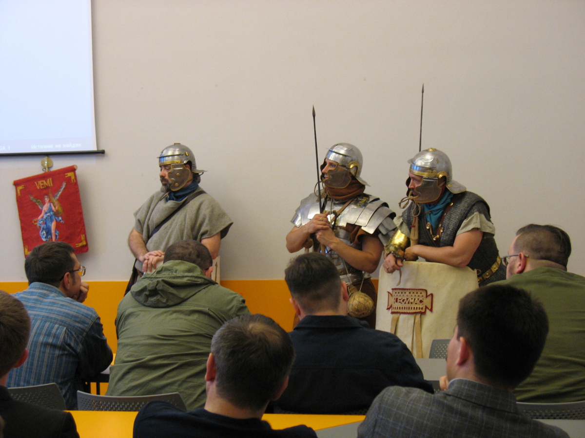Члени групи військово-історичної реконструкції “VEMI – Вексиляція військ Нижньої Мезії” розповіли про реконструкцію римських легіонерів кінця І – початку ІІ ст., про джерела для цієї реконструкції, і показали, як виглядали римські легіонери у зазначений період. Глядачам цікаво було дізнатися, чим саме корисна військово-історична реконструкція, що вона дає для з’ясування певних моментів використання озброєння римських легіонерів.