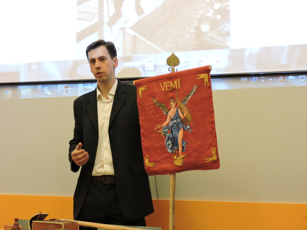 Лектор – викладач університету, кандидат історичних наук Андрій Пількевич – розповів про особливості римської військової організації І – початку ІІ ст., про пов’язані з римською армією міфи, про статуси окремих категорій солдатів і ветеранів тощо.