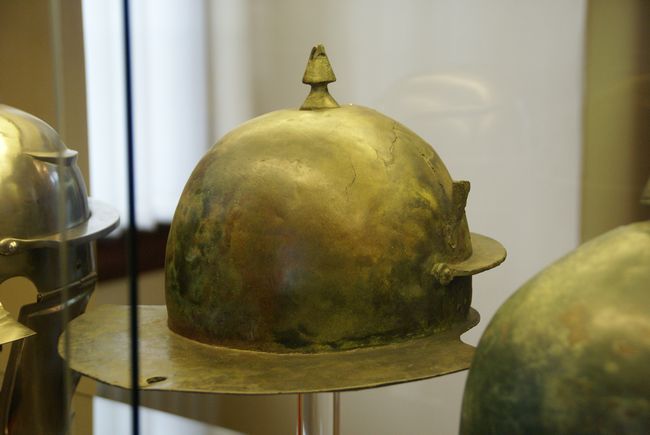 Автори стверджують, що пластинчастий обладунок (так звана “лоріка сегментата”) з’явився внаслідок сутичок з сарматами і парфянами (с. 439–440), хоча перші археологічні знахідки такого обладунку походять з Калькрізе – місця ймовірної битви 9 р. від Р.Х. [4, 5], а зображення сягають навіть 14 р. до Р.Х. [6], у той час як зображення і знахідки пластинчастих обладунків сарматів і парфян датовані значно пізніше! Нижче (с. 446) написано: “з широким розповсюдженням в римській армії нового типу шоломів (Weisenau) лінія розвитку італійського шолому була перервана”. У той же час, за загальноприйнятою та однією з використаних авторами типологією Г. Рассела Робінсона, шоломи кінця І ст. від Р.Х. з Гофгайму, ІІ ст. з Геброну, ІІІ ст. з Нідермьормтеру відносяться до імператорсько-італійського типу [7], отже є продуктами еволюції в тому числі італійських шоломів. Крім того, безпідставно стверджується, що такі додаткові елементи захисту шолому, як козирок, широкий напотиличник, великі нащічники з’являються “саме на шоломах Вайзенау” (с. 457), тоді як широко відомі більш ранні шоломи типу кулус, які мали окремі зі згаданих елементів, або й усі разом. Далі, на с. 458 зазначено, що овальний скутум нібито був витіснений всюди, крім преторіанських когорт, прямокутним щитом вже на початку І ст. Натомість відомі як знахідки залишків овальних щитів середини І ст. (Гурзуфське Сідло, Віндонісса), так і рельєфи з зображеннями легіонерів з овальними щитами середини І–ІІ ст. (Аквінкум, Кляйнвінтергайм, Ольвія), а також маса зображень овальних та інших непрямокутних римських щитів цього часу, що не пов’язані з преторіанцями (рельєфи з Трієсту, Гардуну, Туріну, Ефесу). Сумнівним і непідтвердженим джерелами є твердження, що нібито римський легіонер бився, поставивши щит на землю (с. 463).