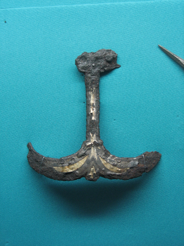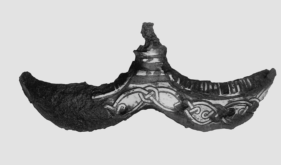 По-перше, нам відомі ще принаймні дві знахідки на території Північної Європи, які впевнено ідентифікують як частини шоломів Х ст. Це “напівмаски” – накладні деталі шолома, що прикривали обличчя воїна. Одна з них знайдена у Тьєле (Данія) (рис. 3), інша – у Локруме (о. Готланд, Швеція) (рис. 4), вони обидві нагадують відповідну деталь шолому з Гйормундбю. Крім того, у поселенні вікінгів Бірка (Швеція) знайдено деталь, що можливо є частиною нижнього обода шолому, до якого кріпилася кольчужна бармиця.