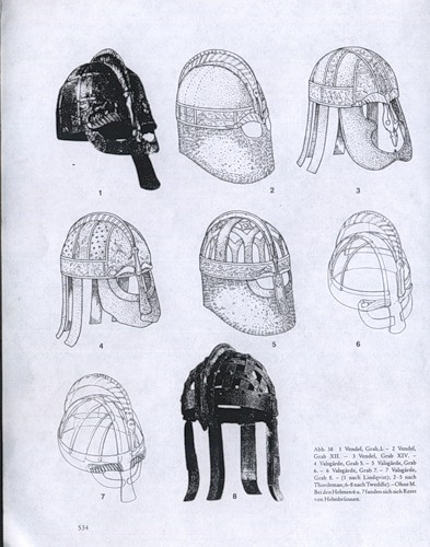 Іншим міфом є використання при відтворенні вигляду вікінгів, варягів і норманів шоломів так званого “вендельського типу”. Вендельським періодом називається відрізок історії Північної Європи від епохи переселення народів (ІІІ–V ст.) до доби вікінгів (кінець VIII–XI ст.). До цього періоду відносяться знахідки залізних шоломів на каркасній основі (рис. 2). Всього їх знайдено дванадцять, і зовнішній вигляд восьми з них можна реконструювати. Всі вони мають поздовжній гребінь, більшість – надбрів’я, яке у частини з них поєднується з захистом очей і носа, а деякі – оснащені кольчужною бармицею. Такі шоломи поєднують у собі риси пізньоримських шоломів з гребенем і варварських каркасних шоломів епохи переселення народів. Всі вони були знайдені у Середній Швеції (Уппланді) і датуються кінцем VI – початком VII ст., а отже від доби вікінгів їх відділяло майже 200 років! Хоча репліки вендельських шоломів ми можемо бачити на реконструкціях вікінгів на військово-історичних фестивалях чи у фільмах (останній раз щось подібне до шоломів Вендельського періоду ми могли бачити на датчанах з серіалу “Останнє королівство” – “Last Kingdom”), говорити про їх використання вікінгами немає жодних підстав.