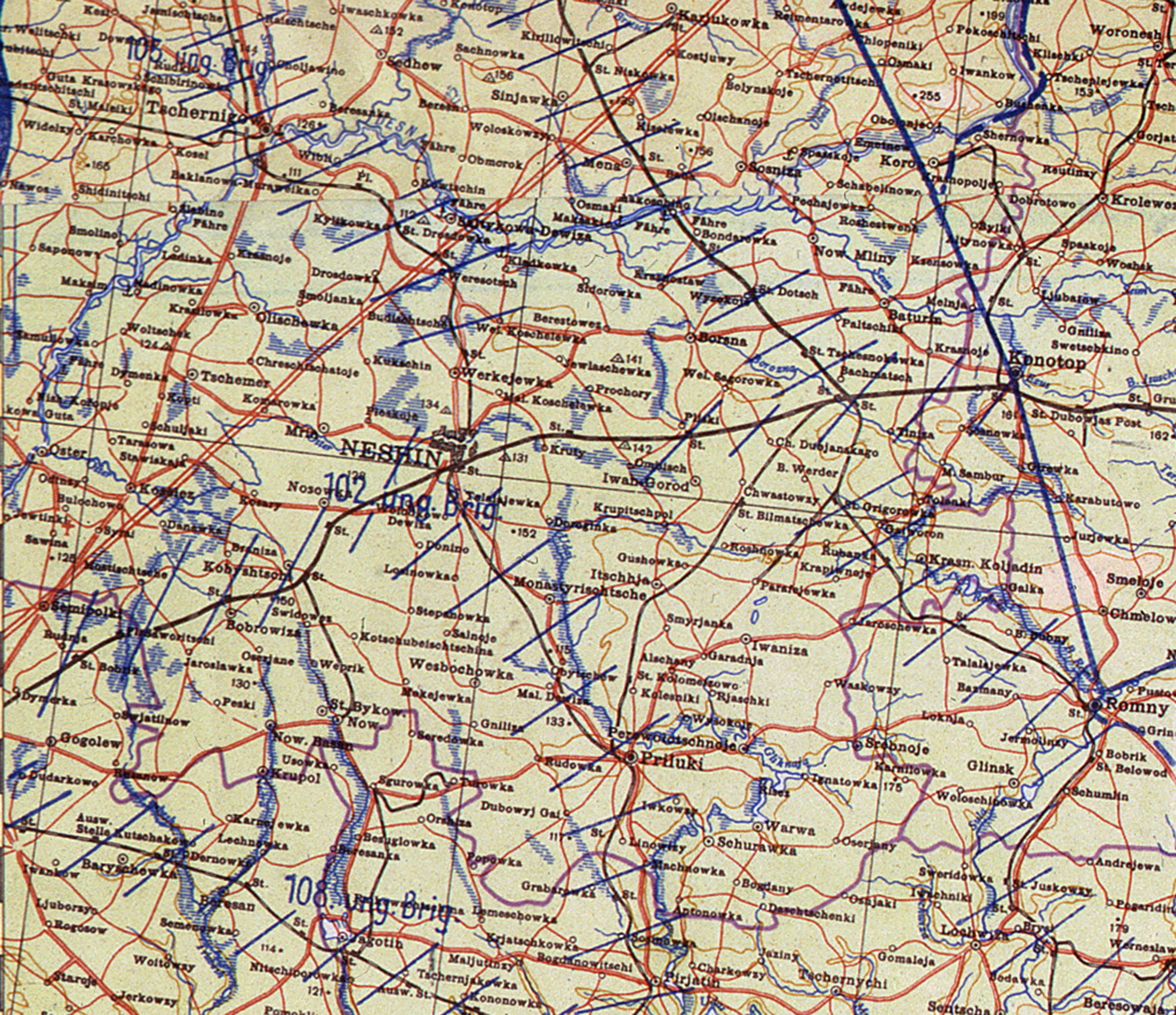 Північніше, в Чернігові комунікації охороняла 105 піхотна бригада генерал-майора Золтана Алдя-Пап, (Álgya-Pap Zoltán). Південніше, в Яготині дислокувалася 108 угорська бригада. Штаб угорської окупаційної групи розташовувався у Києві.